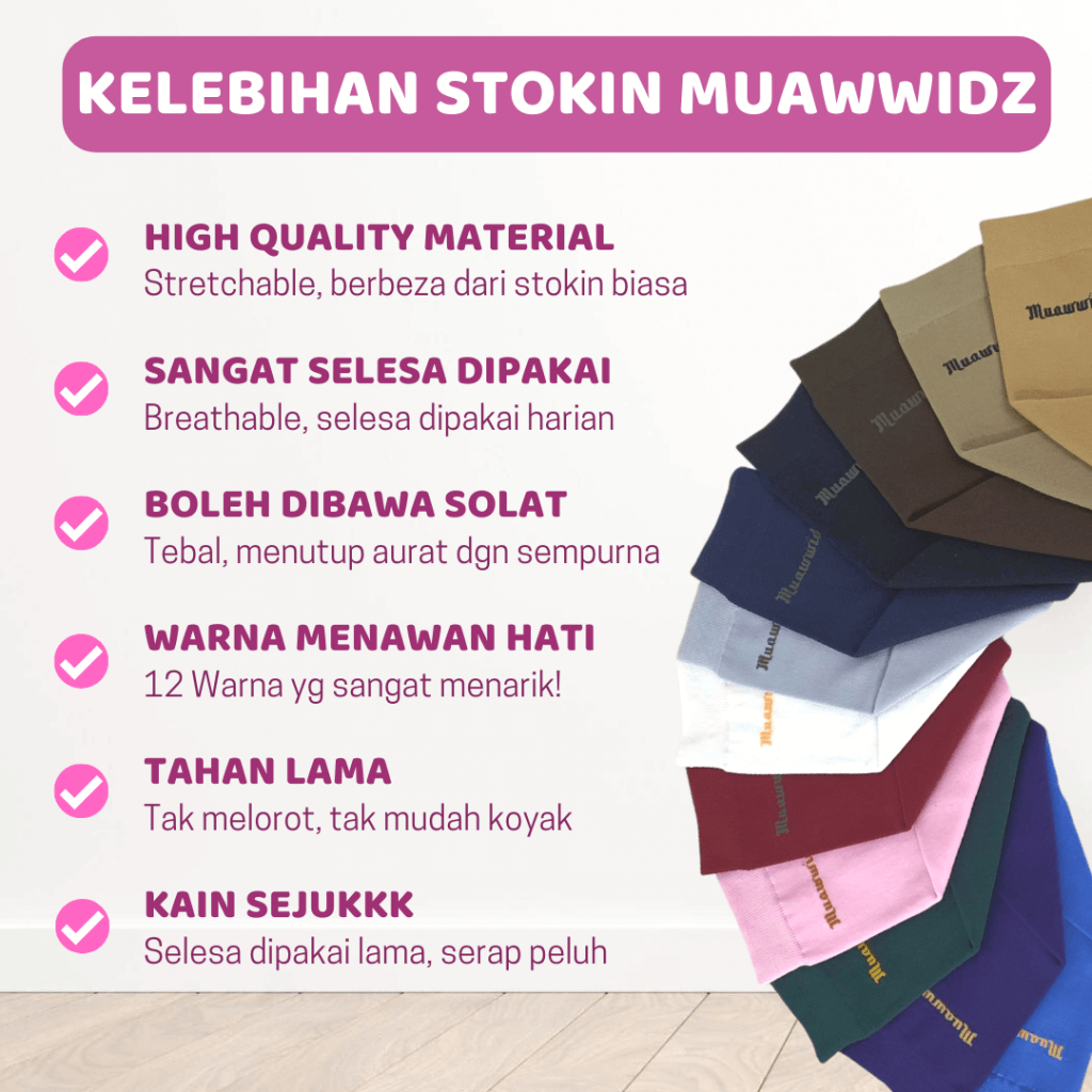 Stokin muawwidz mmg sangat2 sesuai pakai solat, umrah, haji. Alhamdulillah dapat tutup aurat dgn sempurna.