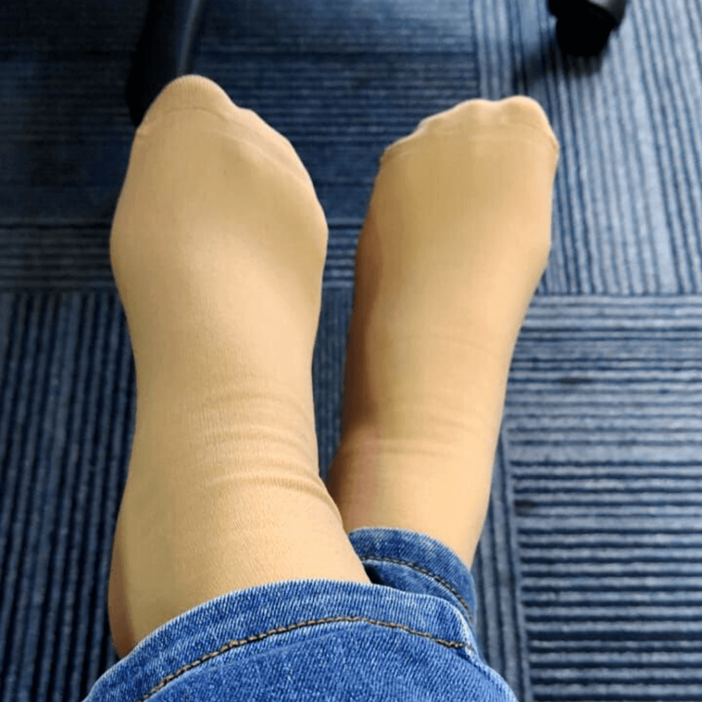 Material sangat2 stretchable. Memeri berkali2 ganda. Sangat selesa utk semua saiz kaki.